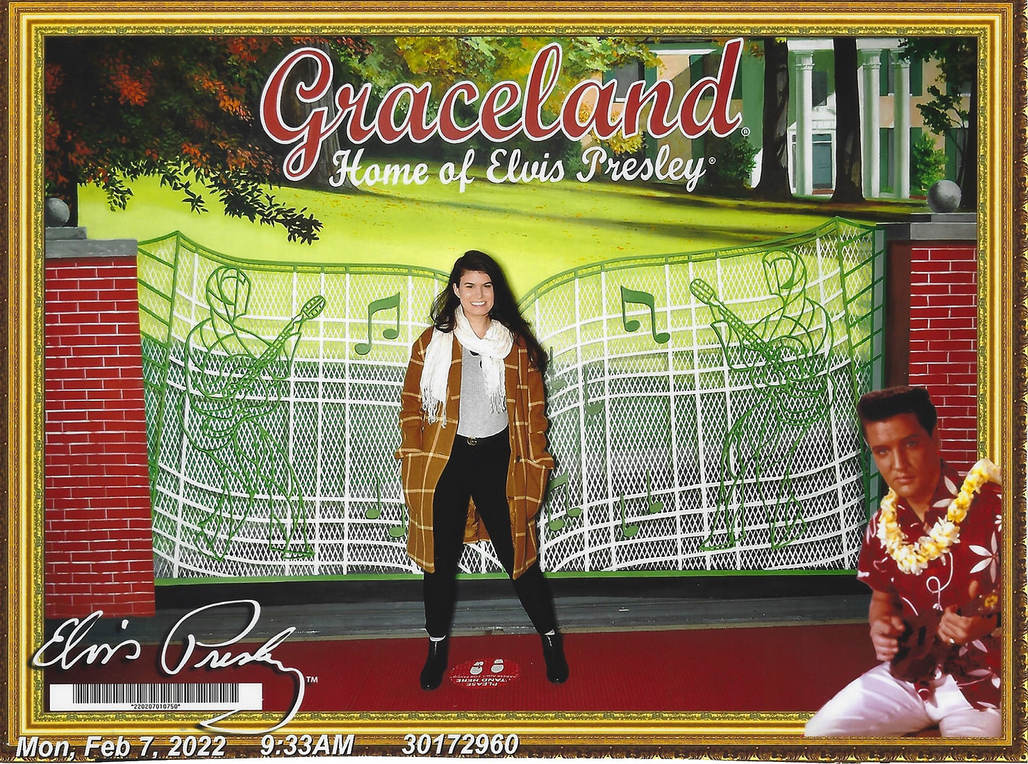I assumed Graceland would be full of people in Elvis t-shirts and wigs, sobbing uncontrollably. But on a chilly Monday morning in early February, I was surprised to find no RVs: the parking lot was virtually empty. I walked through the white music note gates of the complex, designed to mimic the famous gates outside the mansion across the street, while some boppy 1950s Elvis tunes echoed over the empty concrete pavilion. As I scanned the park, Elvis's face was everywhere: On every wall, every piece of paper—really on every surface. I braced myself for what I assumed would be a weird day.