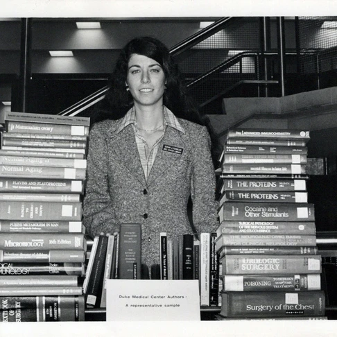 So, things pivoted a bit, but Mom's career continued to rise at the same time she was raising two small children. Just three years after I, her second child, was born, Mom became the Director of the Duke Medical Center Library at the age of 43. Over the next six years, my mother led the library in its continued move into the digital era, including the design and construction of its first computer lab and digital classroom. Mom was at the helm of the library and on the national stage to set up library sciences for a successful future.